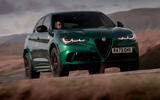 Those drawn to this car at least partly for its space and usability ought to be reasonably pleased that it offers a good deal more on both scores than the Giulia Quadrifoglio. The altitude at which the cabin seats you isn’t quite as high as SUVs of this size typically do, so the driving position is pretty recumbent, and you’ll find enough room in the back seats for full-sized adult passengers, although you sit in a lower and more bent-legged pose than some might expect to.